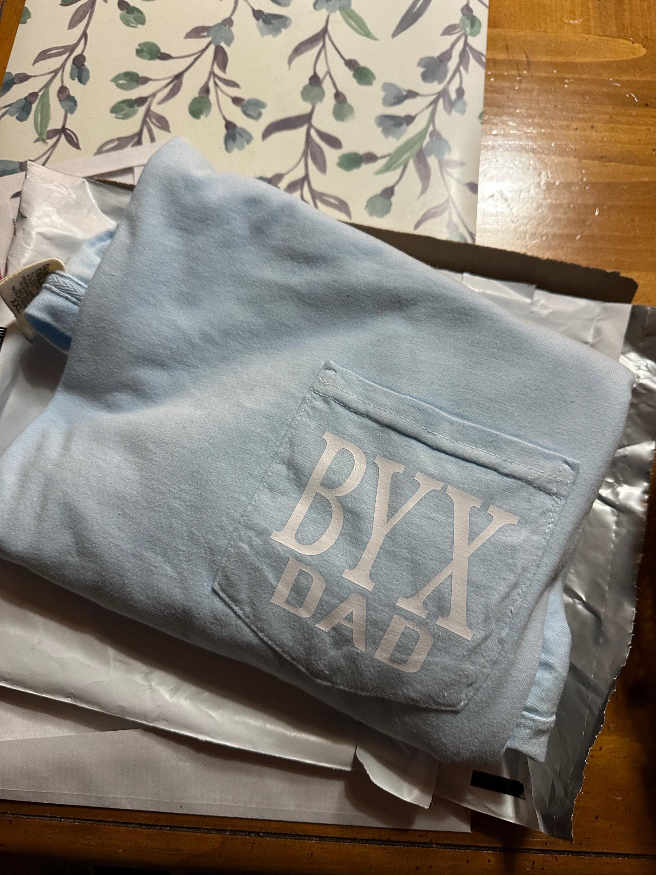 The Perfect Fathers gift. A short sleeve pocket t-shirt with the greek letters in white with DAD printed under the greek letters. Comfort Color brand shirt. Print is in heat vinyl transfer. All letting will be in the color white.